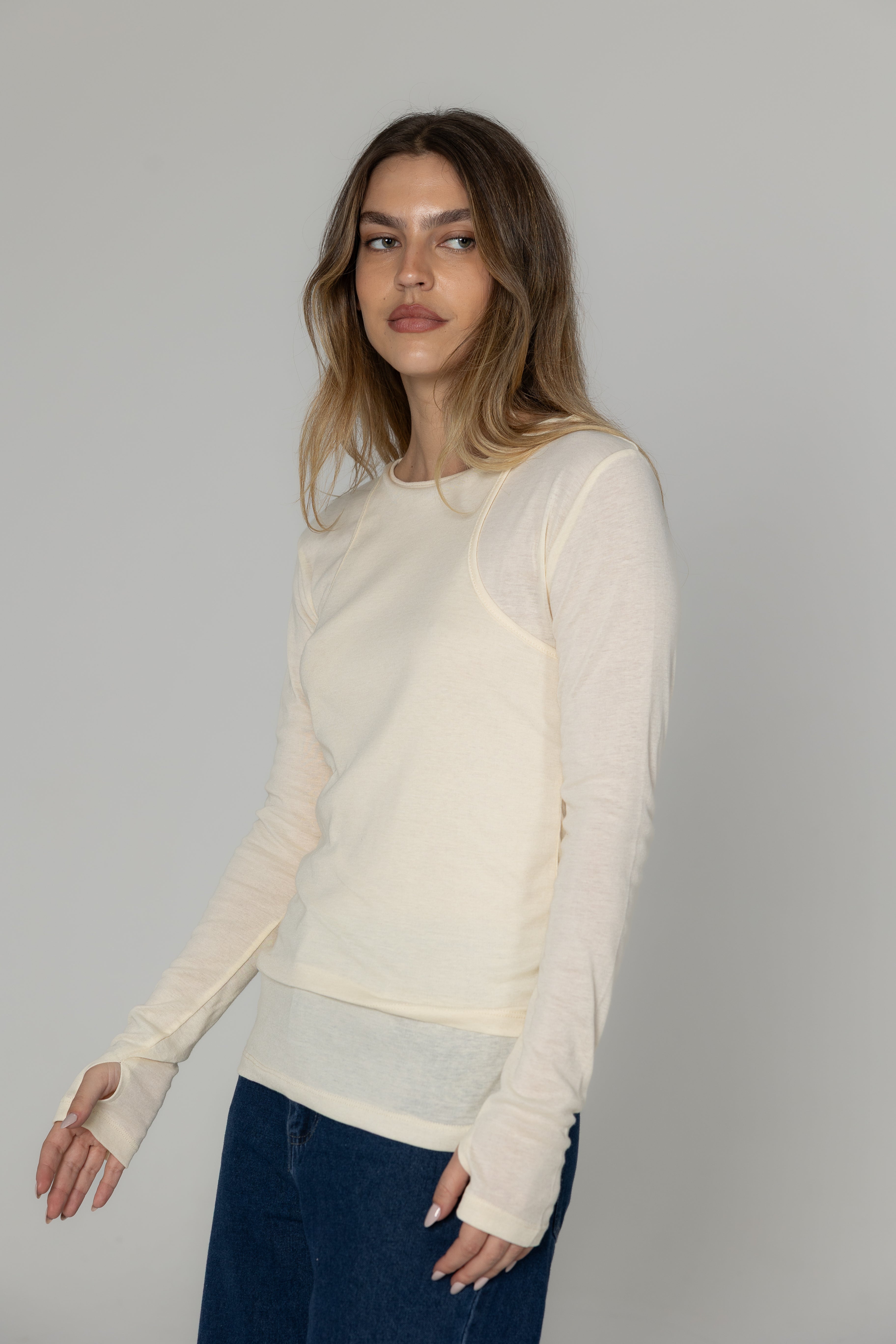 חולצה כפולה מבד מוס