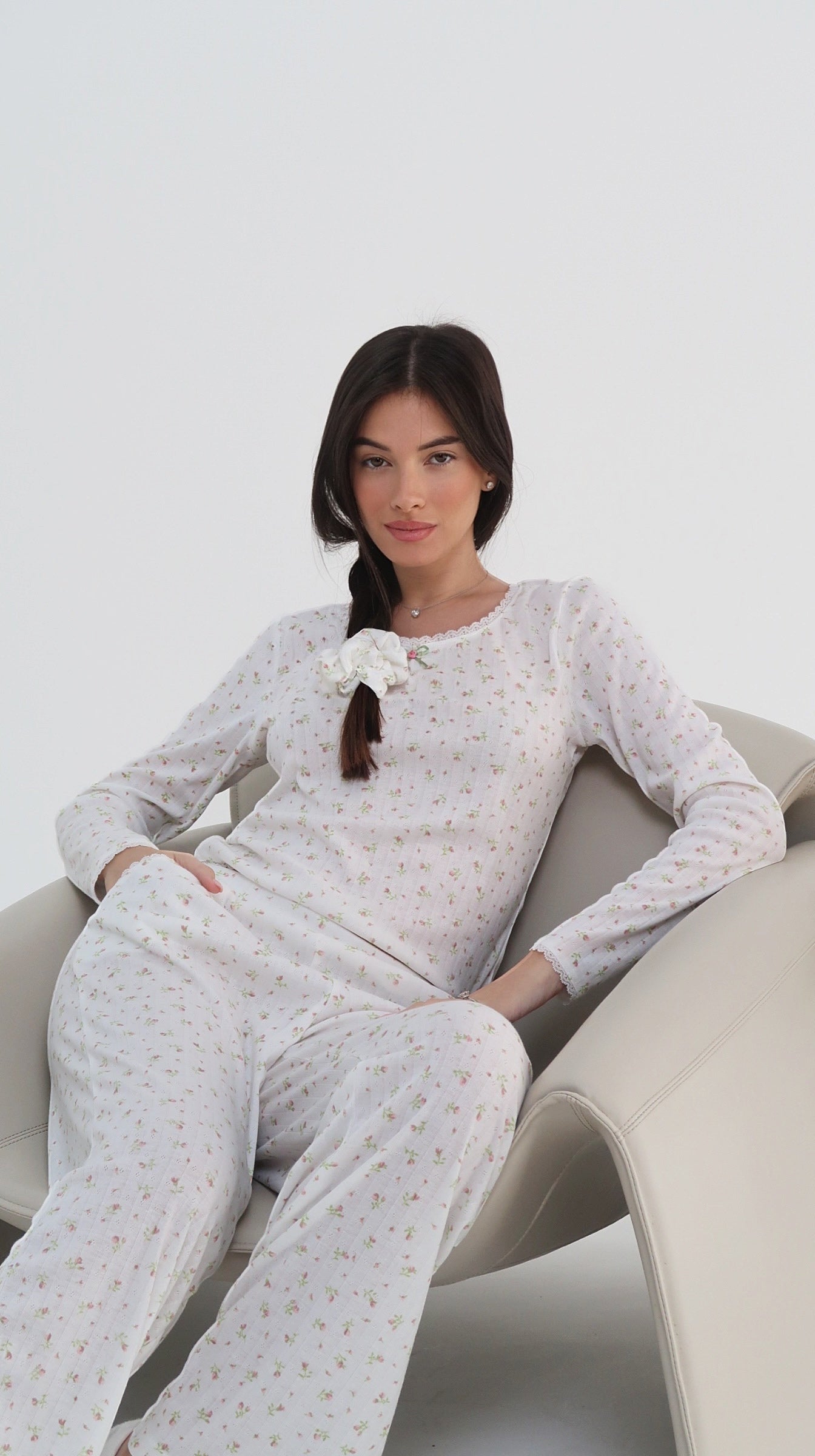 פיג׳מה פירחונית לבנה